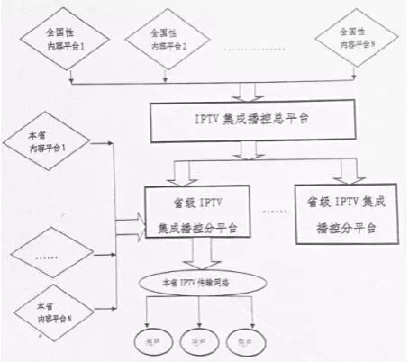 2.全国IPTV内容服务平台接入IPTV集成播控总平台,省级IPTV内容服务平台接入本省IPTV集成播控分平台,IPTV集成播控总平台与IPTV集成播控分平台对接。