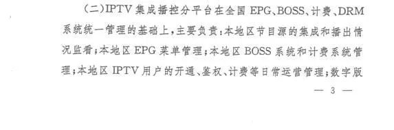 三、在IPTV集成播控总分平台规范对接基础上,加快推动与IPTV传输系统按要求对接