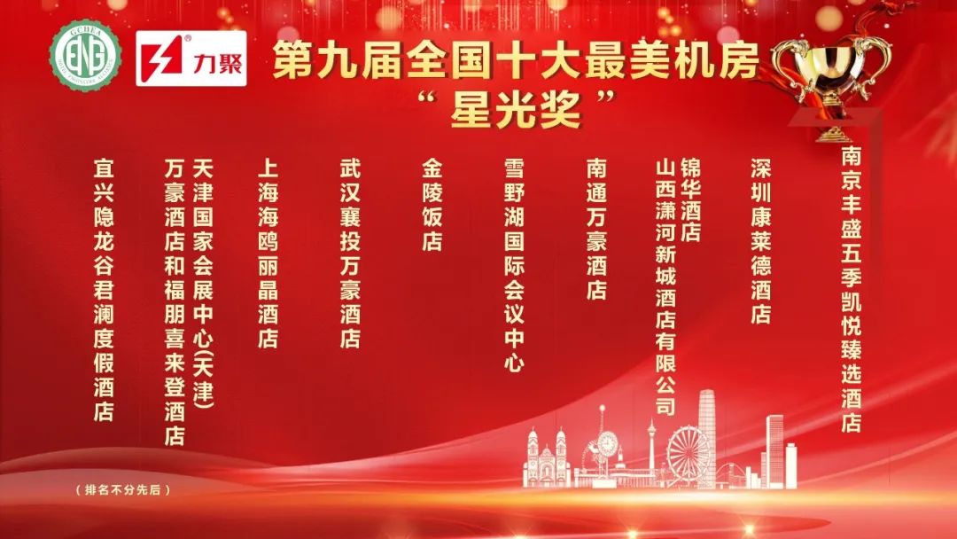 祝贺以下酒店荣获由浙江力聚热能装备股份有限公司冠名的第九届全国十大最美机房“星光奖”荣誉称号。
