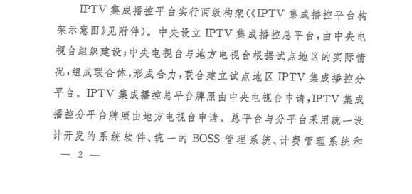 近日,广电总局给各省局正式下发2019(76)号文,《IPTV集成播控平台与传输系统规范对接工作方案》。